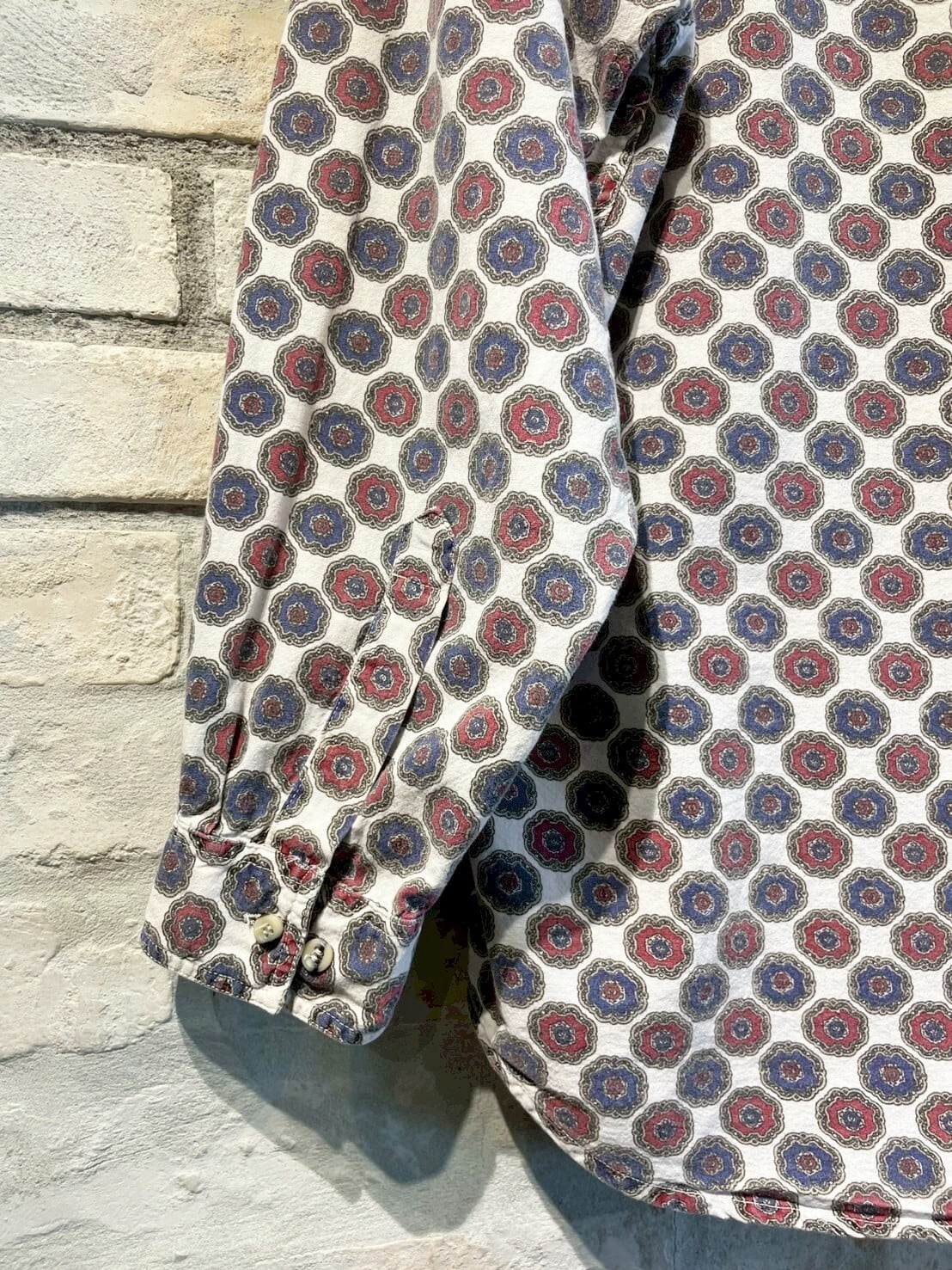小紋柄のコットン、ボタンダウン。