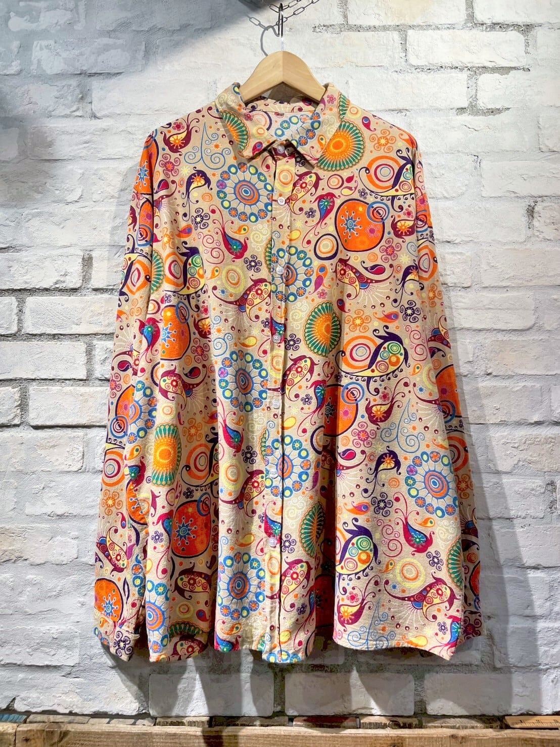 リネン混?のサイケなシャツ。